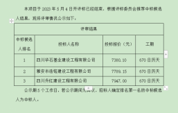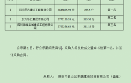 成雅工業(yè)園區(qū)百丈安置房二期項目鋼筋采購,根據(jù)有關(guān)法律、法規(guī)、規(guī)章的規(guī)定,于2023年4月21日經(jīng)雅安市名山區(qū)益業(yè)商貿(mào)有限公司競爭性談判比選流程,評審工作已經(jīng)結(jié)束,成交人已經(jīng)確定,現(xiàn)將成交結(jié)果公示如下:成交單位名稱:四川霞成商貿(mào)有限公司成交價:加成價30元/噸進(jìn)場時間:待甲方通知成交質(zhì)量要求:合格自成交結(jié)果公示之日起一個工作日內(nèi),對成交結(jié)果無異議的,采購人將簽發(fā)成交通知書,并在五個工作日內(nèi)簽訂合同。雅安市名山區(qū)益業(yè)商貿(mào)有限公司2023年4月23日...