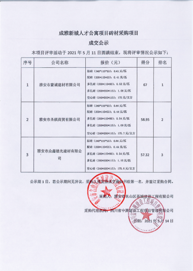 成雅工業(yè)園區(qū)百丈安置房二期彩色透水混凝土(包工包料)采購項目詢價結(jié)果公告...